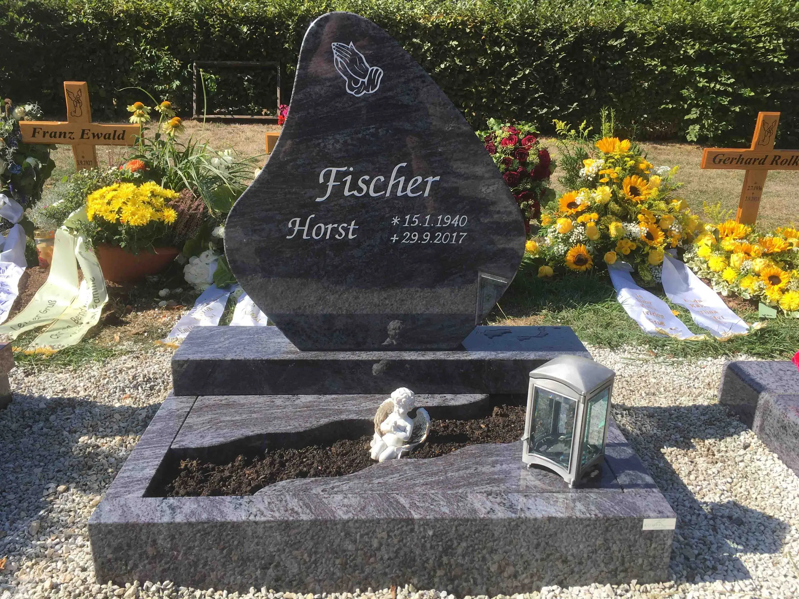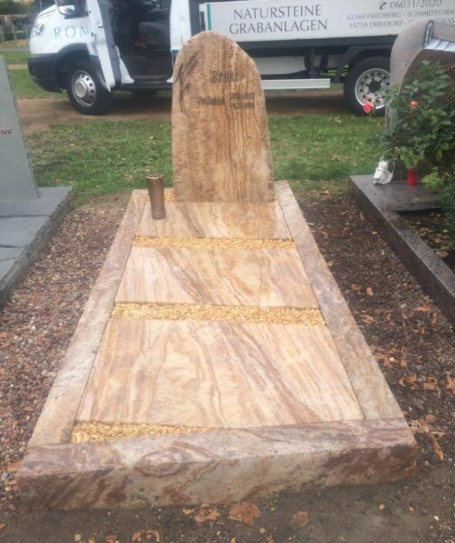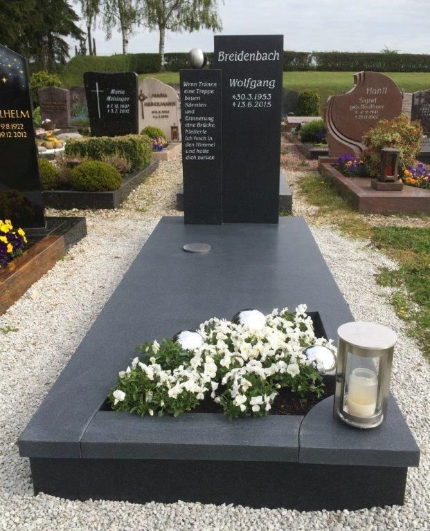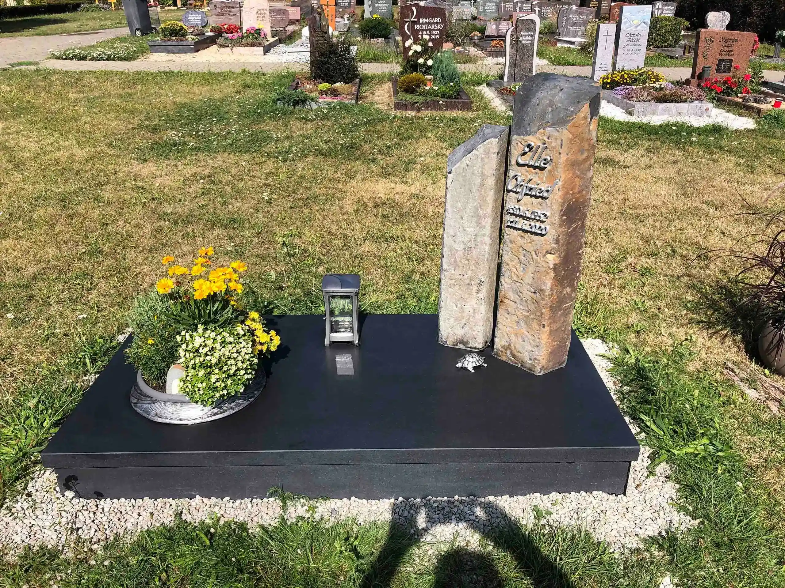 Passend zu den von uns gefertigten Grabsteinen liefern wir bei Bedarf sowohl Grabplatten als auch Grabumrandungen. Grabsteine bieten den Vorteil, dass sie leicht sauber zu halten sind. So reduziert sich der Aufwand für die Grabpflege auf ein Minimum. Selbstverständlich ist es möglich, sowohl Vasen als auch Schalen oder Laternen in unterschiedlichen Designs fest auf der Grabplatte zu verankern.