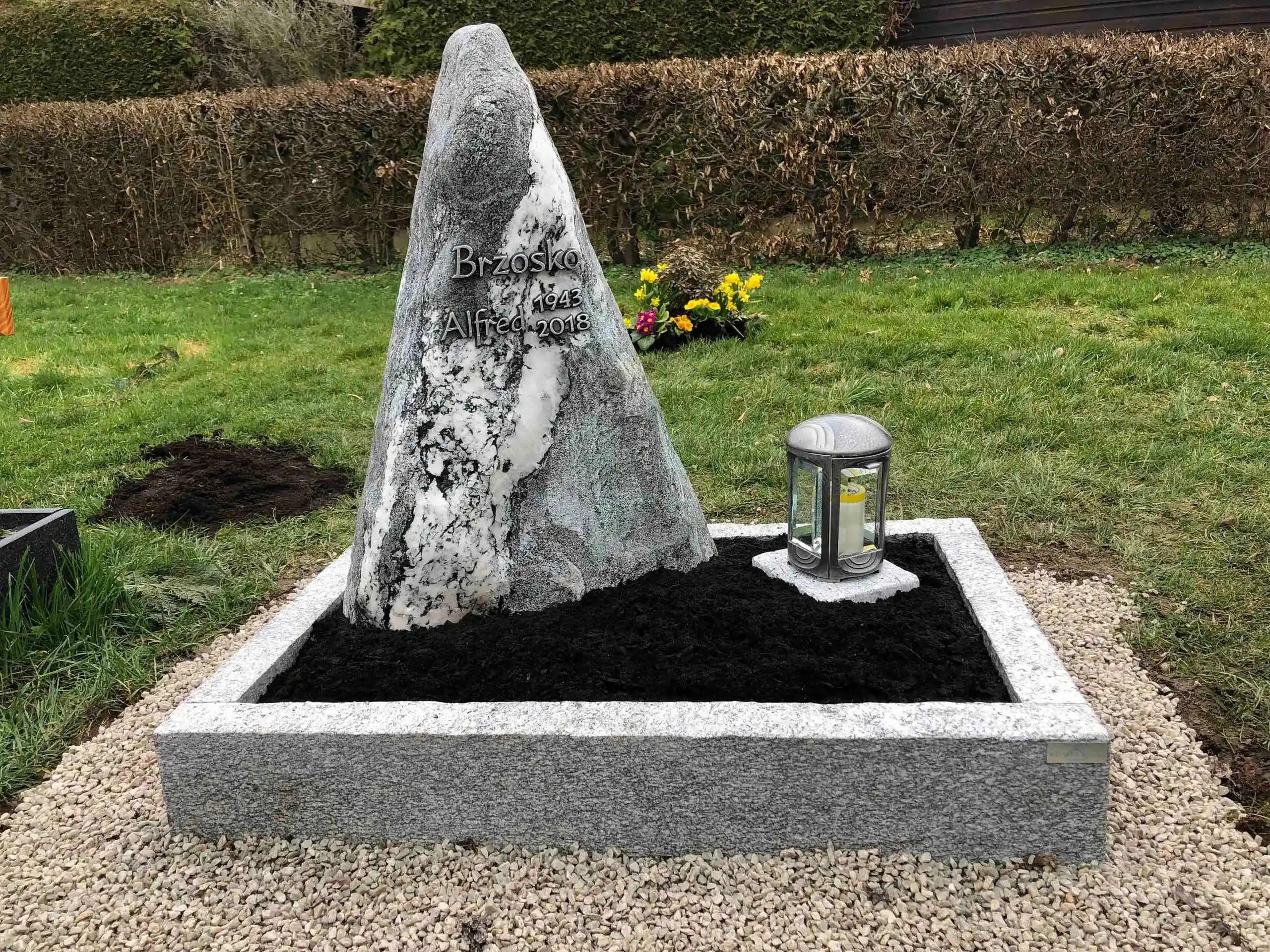 Wir helfen Ihnen, mit hochwertig verarbeiteten Grabmalen und Grabsteinen, die letzte Ruhestätte Ihrer Verstorbenen ansprechend und repräsentativ zu gestalten. Hierfür verarbeiten wir unter anderem Granit und Marmor in verschiedenen Farbtönen und mit unterschiedlichen Maserungen. Basalt kommt als Material ebenfalls infrage. Darüber hinaus ist die Gestaltung von Findlingen als Grabstein möglich. Wir bringen die natürlichen Steine in die von Ihnen gewünschte Form und veredeln diese.